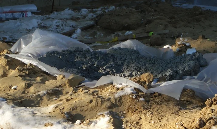 Plastic will prevent caustic water from entering ground water during footing pour
